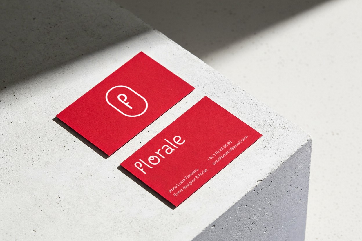 Florale is an independent floral studio in Târgoviște, Romania, specializing in handcrafted wedding and event compositions. Set within a modern, minimalist space of concrete and glass, the studio pairs architectural clarity with deeply personal craftsmanship. The identity reflects this duality — combining a simplified, folk-inspired bouquet mark with a clean and confident visual language. The result is a brand that feels contemporary yet rooted, artisanal yet refined.